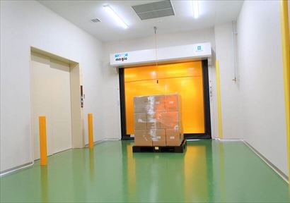 荷物(材料)が加工エリアに入る際はエアーカーテンを通り前室(材料用)にて外観チェックを受けてから入ります。